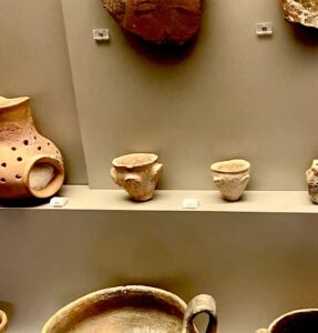 Vessel inspiration taken from the form of the sauce bowls, and the tactile elements of children's toy pots in the Cycladic and Neolithic collections of the National Archaeological Museum of Athens.
